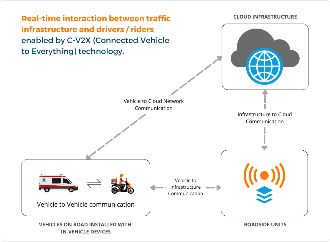 Become a part of C-V2X Automotive revolution. With new Software Upgrades, get access to features like Free-Flow Tolling Systems, Parking Management Systems, Traffic Signal Timer Notifications, Driver Fatigue Detection, Easy Insurance Claims and much more..